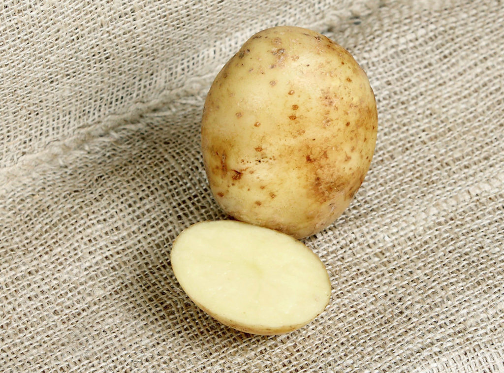The tubers are oval in shape with a white skin and cream coloured flesh. It is also a good long-term storage potato. Maincrop maturity with high yields, many tubers per plant and medium dry matter.